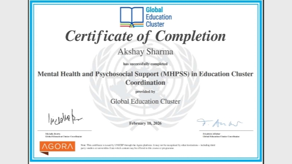 डिजिटल प्रगति के साथ-साथ वर्तमान समय में छात्रों के मानसिक स्वास्थ्य की चुनौतियां भी बढ़ी हैं। यूनिसेफ द्वारा प्रदान किया गया मेंटल हेल्थ एंड साइकोसोशल सपोर्ट सर्टिफिकेट इस दिशा में एक क्रांतिकारी कदम है। यह विशेषज्ञता दर्शाती है कि विद्यालय परिसर में अब विद्यार्थियों के भावनात्मक और मनोवैज्ञानिक पहलुओं को समझने के लिए एक प्रमाणित ढांचा उपलब्ध है।