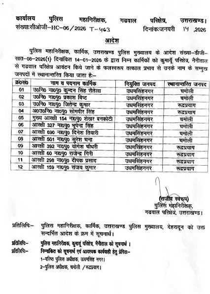 जांच को प्रभावित होने से बचाने के लिए प्रशासन ने एक बड़ा प्रशासनिक फेरबदल भी किया है। इस मामले से जुड़े या संबंधित क्षेत्र में तैनात कुल बारह पुलिस कर्मियों का तत्काल प्रभाव से गढ़वाल रेंज के चमोली और रुद्रप्रयाग जनपदों में स्थानांतरण कर दिया गया है। इन कर्मियों में उपनिरीक्षक, मुख्य आरक्षी और आरक्षी शामिल हैं। यह स्थानांतरण इसलिए किया गया है ताकि स्थानीय स्तर पर जांच की निष्पक्षता पर कोई सवाल न उठ सके।